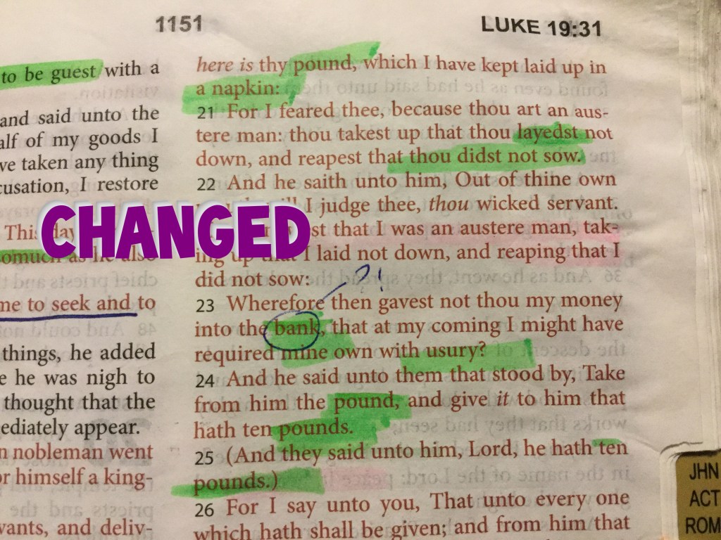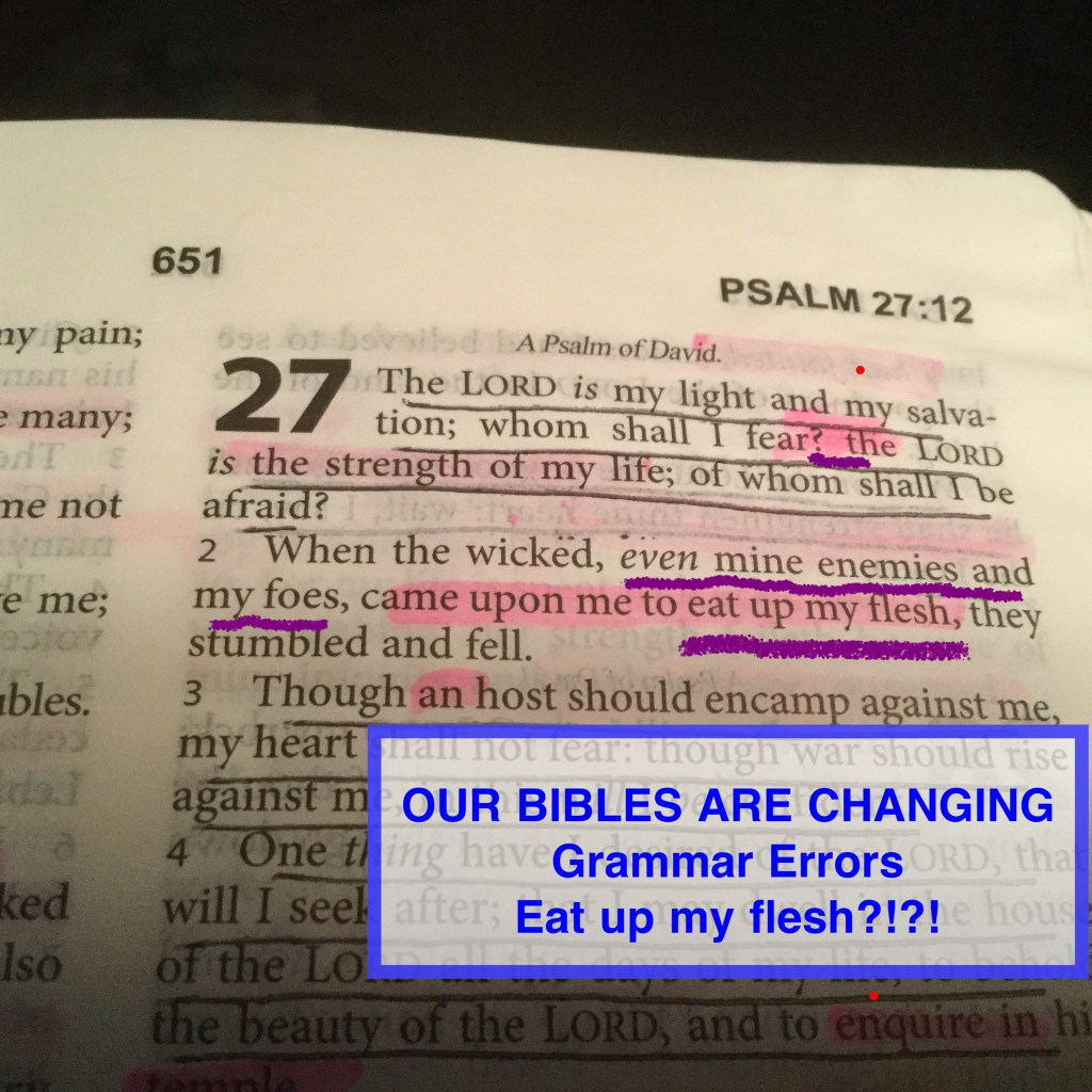 Below are various examples of KJV Bible changes. Please go grab your Bible and follow along. At this juncture, there are obvious changes on every single page of the Bible, including: grammar errors, nonsense and gibberish, emoticons, new words, words omitted, doctrinal errors, new people, spelling errors, and so forth.